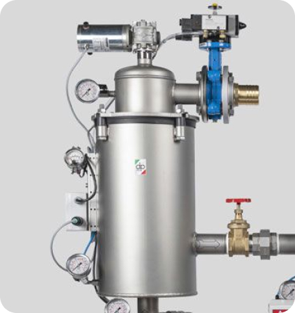 Just Water 3.1 is a clarified water filtration unit composed of two filters, J and W. The J filter is a 25 µm mesh filter with an automatic rotary cleaning system. Filter W refines the filtration process by retaining particles up to 5 µm. Just Water 3.1 guarantees a constant, high-quality water flow to the CNC spindle units even during self-cleaning.