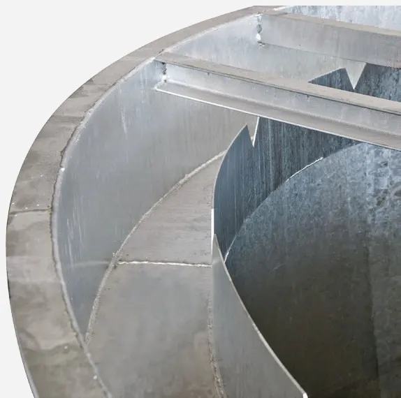 Hot-dip galvanised filter press with stainless steel cover and drainage channel.